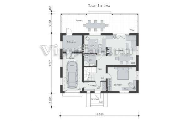 | Размеры дома: | 9.62м×12.52м |